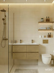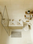 - Dubbele wastafel (materiaal: cast marble)