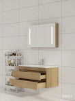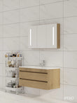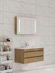 100cm Badmeubel WEBO Paris Compleet Geleverd Eiken inclusief spiegelkast met verlichting en kraan en afvoer