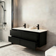 120cm Badmeubel WEBO London Compleet Geleverd Mat Zwart (2 kraangaten) inclusief zwarte kranen en afvoer