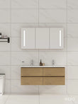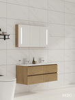 120cm Badmeubel WEBO Paris Compleet Geleverd Eiken inclusief spiegelkast met verlichting en design kranen en afvoer