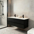 140cm Badmeubel WEBO London Compleet Geleverd Mat Zwart (2 kraangaten) inclusief zwarte kranen en afvoer