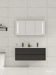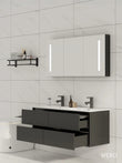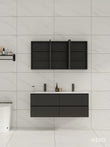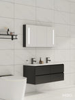 140cm Badmeubel WEBO Paris Compleet Geleverd Zwart (2 kraangaten) inclusief spiegelkast met verlichting, zwarte kranen en afvoer