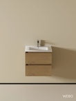 De eiken onderkast is voorzien van 2 royale lades waarin je al je badkamer- en verzorgingsproducten netjes kunt opbergen. Dankzij het soft open- en close systeem openen en sluiten de lades soepel en geluidloos. De geïntegreerde handgrepen geven het meubel een strak en minimalistisch uiterlijk.
