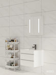 60cm Badmeubel WEBO Paris Compleet Geleverd Wit inclusief spiegelkast met verlichting en zwarte kraan en afvoer