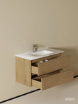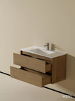 De eiken onderkast beschikt over 2 diepe lades met voldoende ruimte voor al je badkamer- en verzorgingsproducten. Dankzij het soft open- en close systeem openen en sluiten de lades soepel en geruisloos. De geïntegreerde handgrepen zorgen voor een minimalistische en moderne uitstraling.