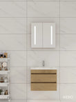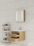 80cm Badmeubel WEBO Paris Compleet Geleverd Eiken inclusief spiegelkast met verlichting en kraan en afvoer