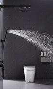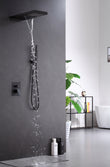 Met dit douchesysteem geniet jij van een stijlvol vormgegeven hand- en hoofddouche. Zowel de hoofddouche als de handdouche beschikt over twee verschillende straalsoorten, waardoor jij de douchebeurt creëert waar jij behoefte aan hebt. De hoofddouche heeft 2 waterstanden: de regenstand en de waterval stand. Dankzij de thermostaatkraan is jouw water bijna direct op temperatuur en de waterstroom constant. Een heerlijke regendoucheset die bijdraagt aan een weldadig gevoel.